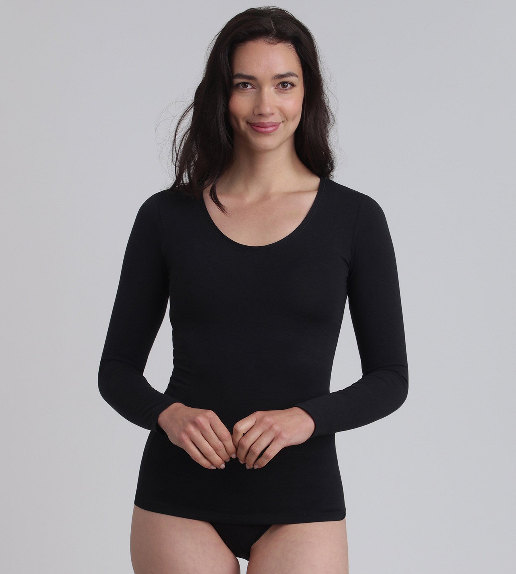A second-skin effect with the long-sleeved t-shirt in black Thermal Tech!