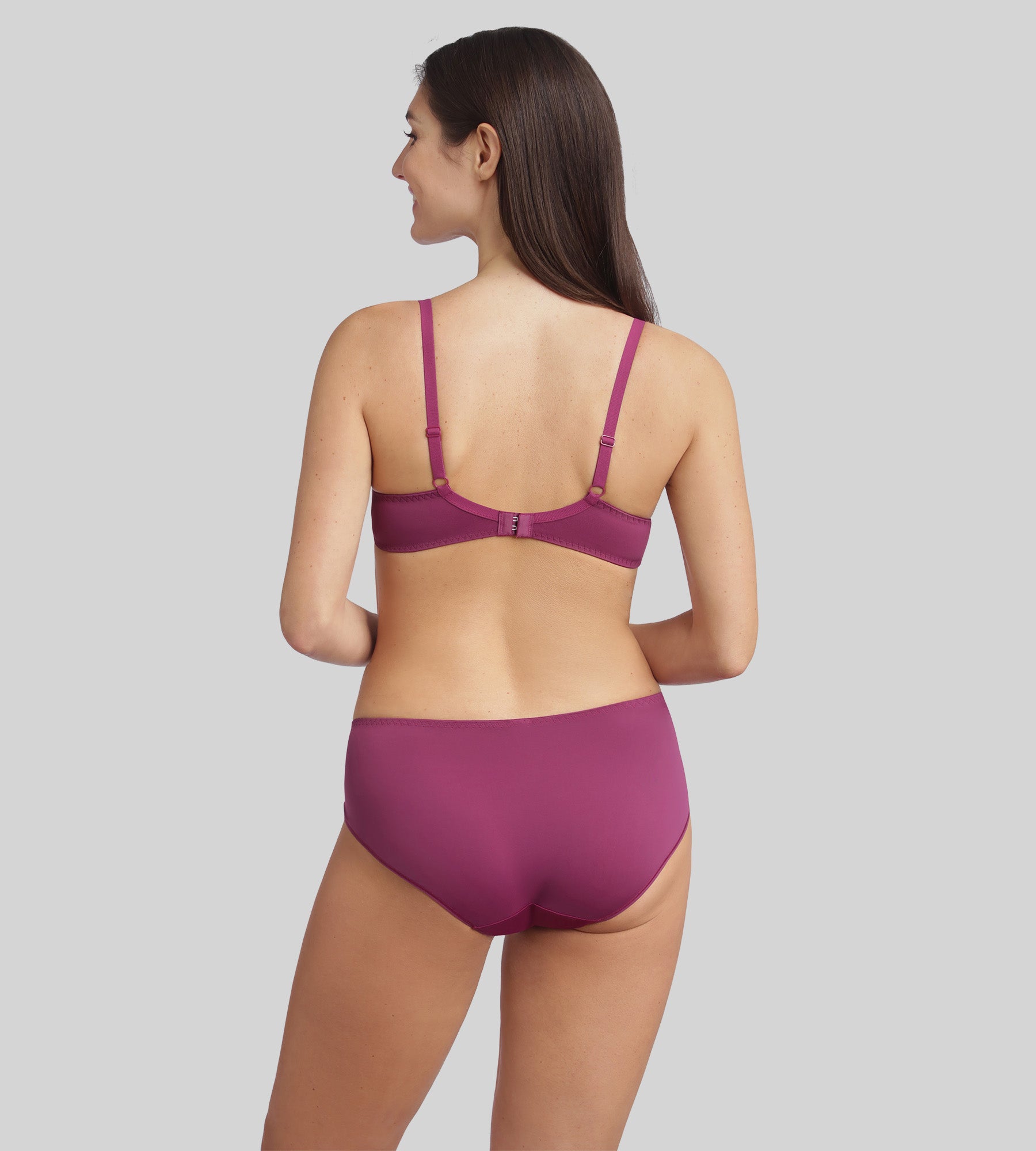 Succumb to the timeless charm of the Essential Elegance Embroidery midi knickers, now available in a vibrant imperial purple. The floral lace on the front delicately emphasises femininity, while the ultra-soft, stretchy microfibre at the back ensures absolute comfort throughout the day. Elegant and comfortable to wear, these knickers combine refinement and well-being for all occasions. Their full coverage shape hugs your curves perfectly and provides a feeling of gentle support.