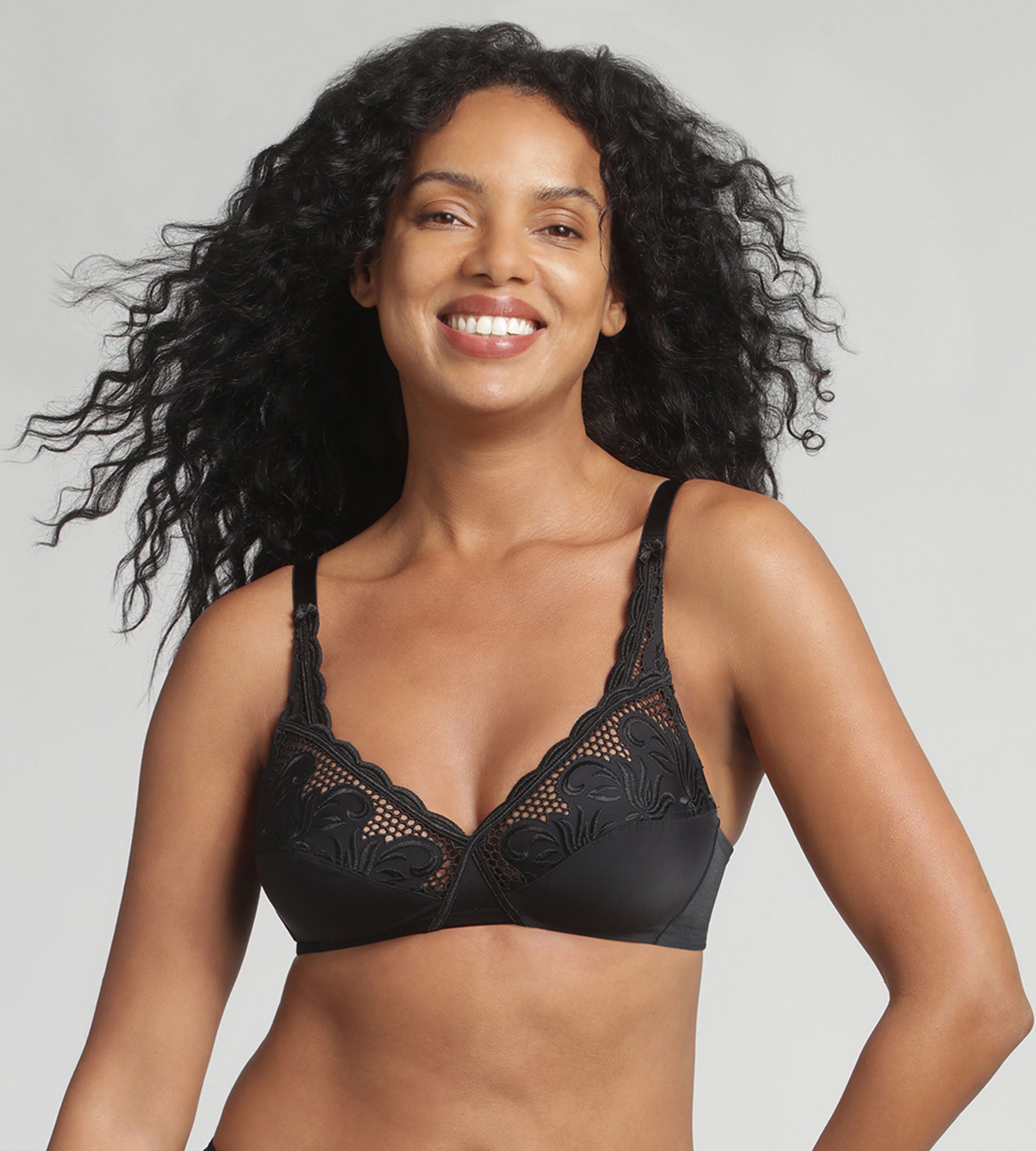 The black non-wired bra from the Cross Your Heart Modern Tricot collection offers you ultimate support. The X-shaped construction of this piece of lingerie ensures a perfectly supported and comfortable bust thanks to the thick straps and interlocking cups, as well as the U-back structure. The feminine microfibre underwear adds femininity and refinement with scalloped embroidery inserts along the neckline, making this black lingerie truly irresistible.