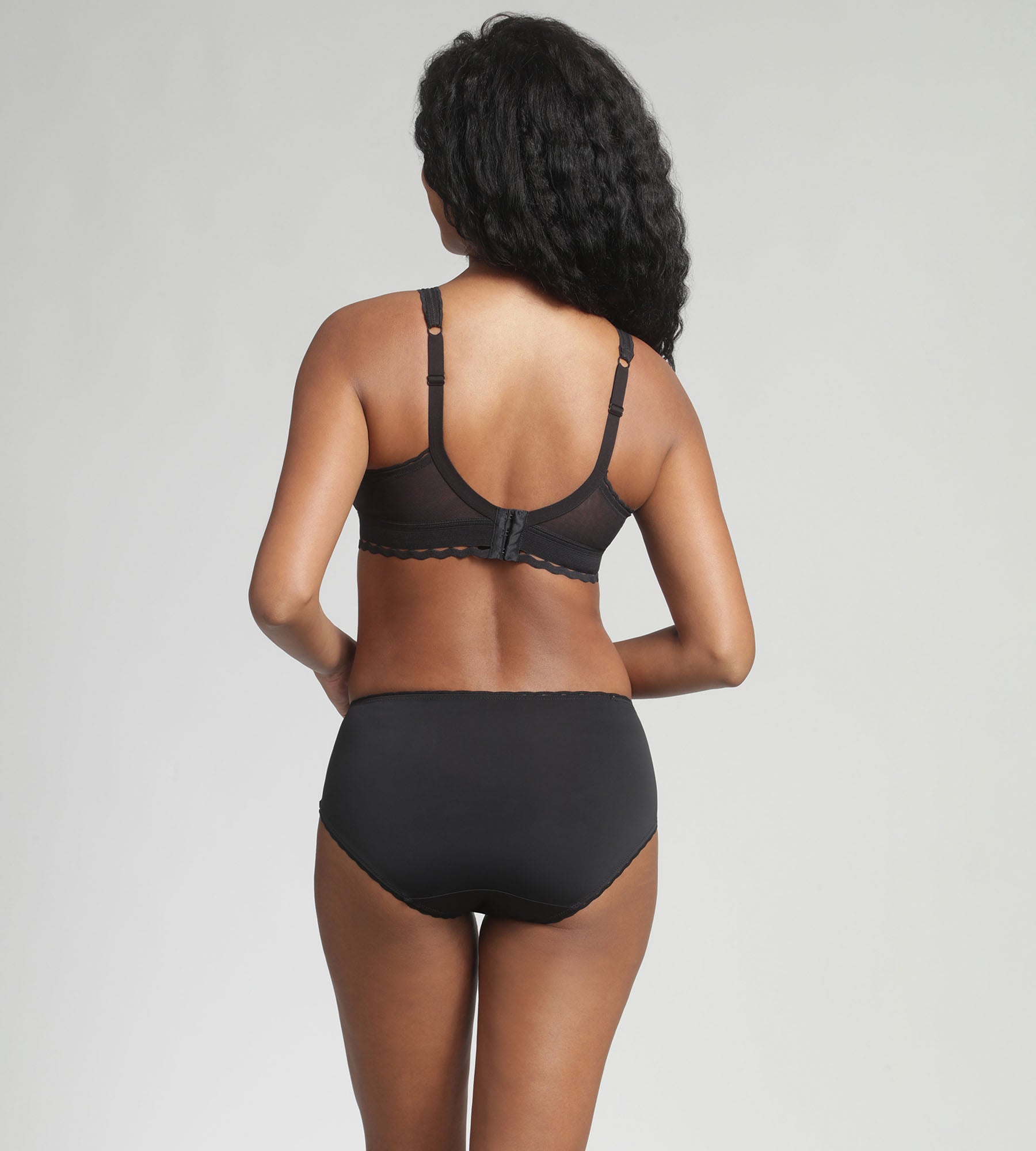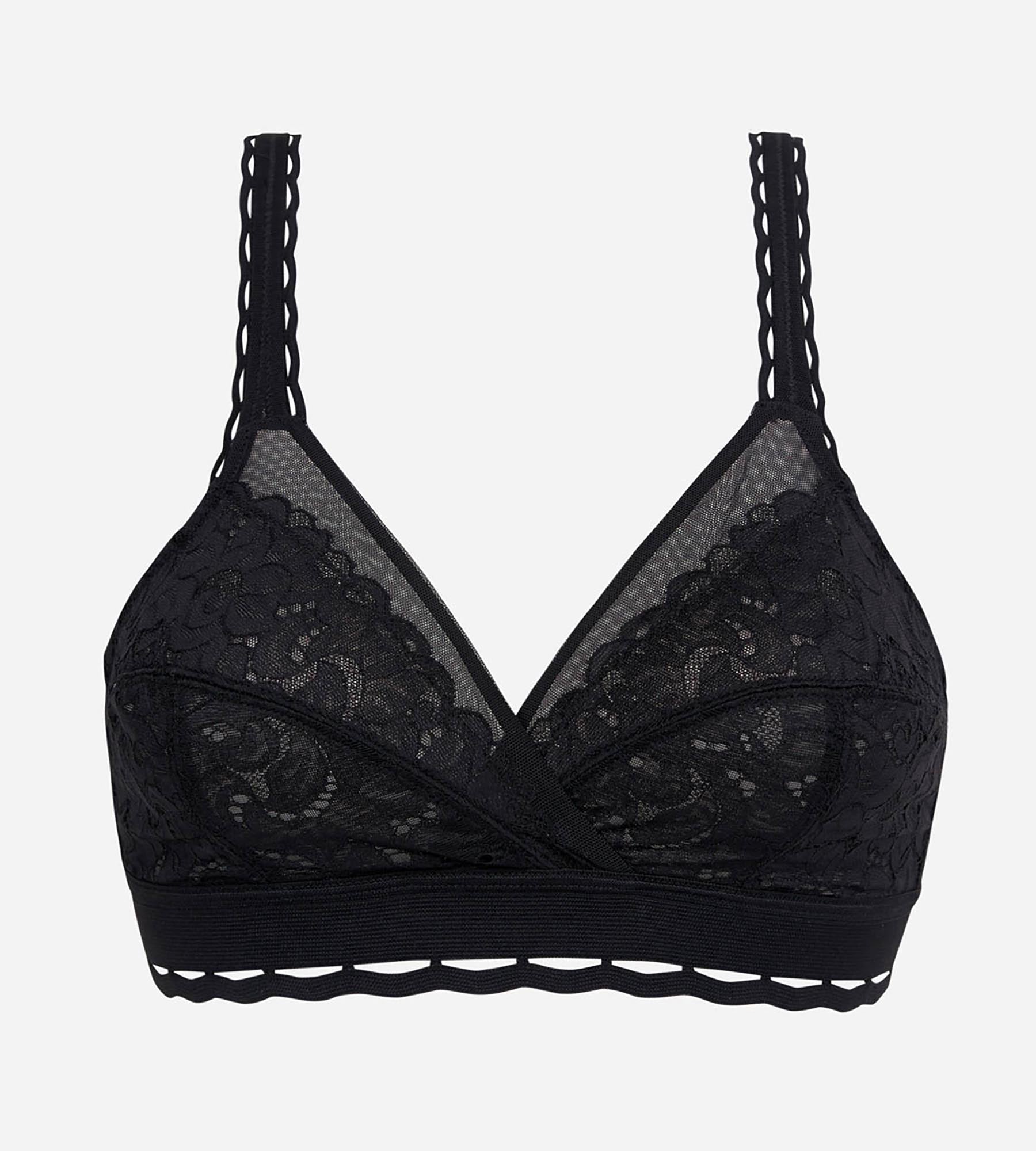 Our Classic Lace Support bras are back and better than ever! Opt for a more sustainable approach with our non wired bra in recycled fabric. Its lace and tulle panelling make it an irresistibly chic addition to your lingerie drawer. Its scalloped hem with cut-out detailing is a flattering and modern detail that will flatter your curves.