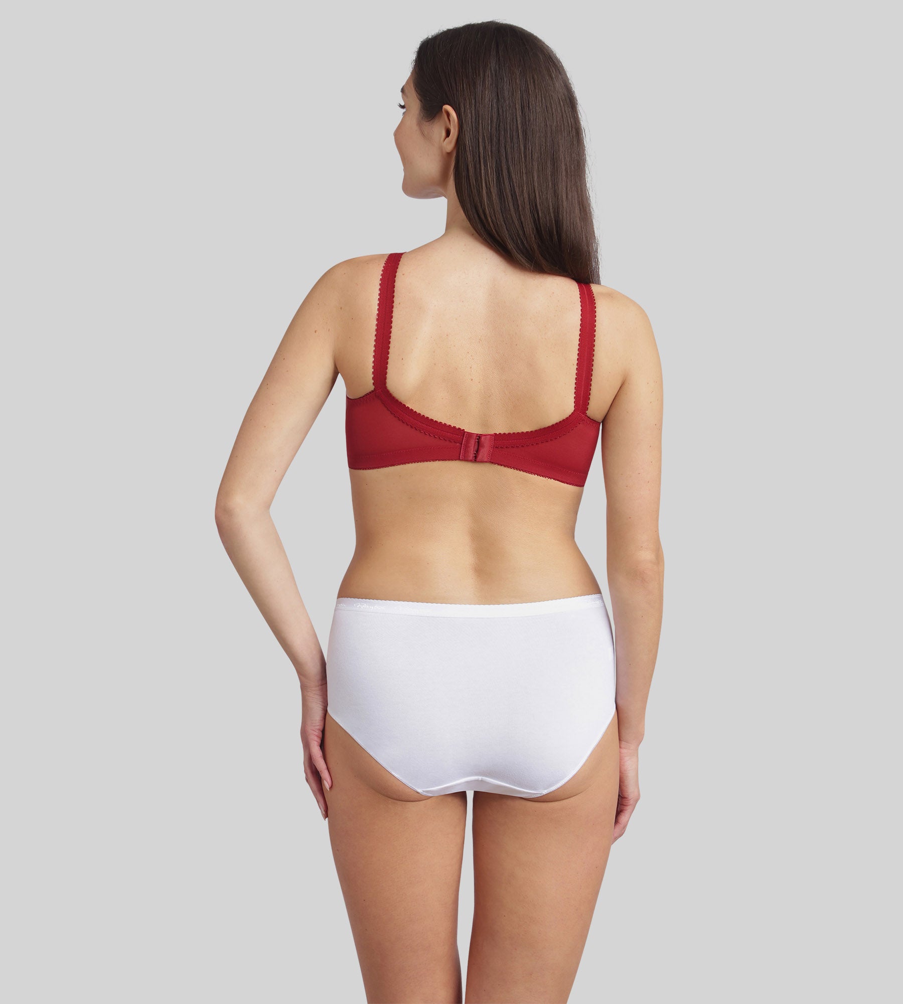 The Cross Your Heart 556 full-cup bra in velvet red adds a touch of sensuality to this iconic style. Thanks to its iconic criss-cross structure and lack of underwire, it supports the bust while offering a natural shape. Its tone-on-tone lace gently envelops the bust, while its wide straps and U-shaped back ensure a flawless fit, particularly suitable for larger sizes. This deep, elegant red adds a touch of character to your lingerie, ideal for combining comfort and seduction.