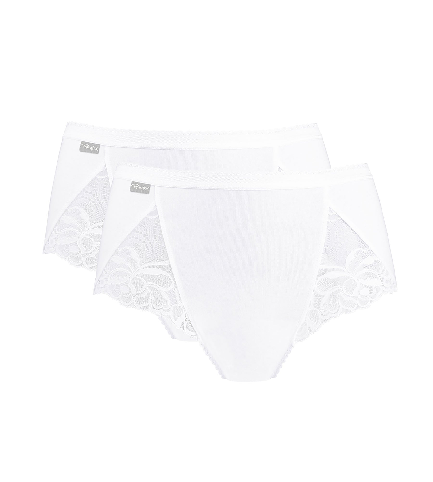 This two pack of white midi knickers from the Cotton & Lace collection achieves a perfect balance between simplicity and femininity. The cotton briefs features soft, delicate lace panels on the sides. The wide, elasticated waistband is highlighted with light, delicate braiding, while the back hugs your curves. The ultra-fine, soft cotton fabric keeps you comfortable all day.
