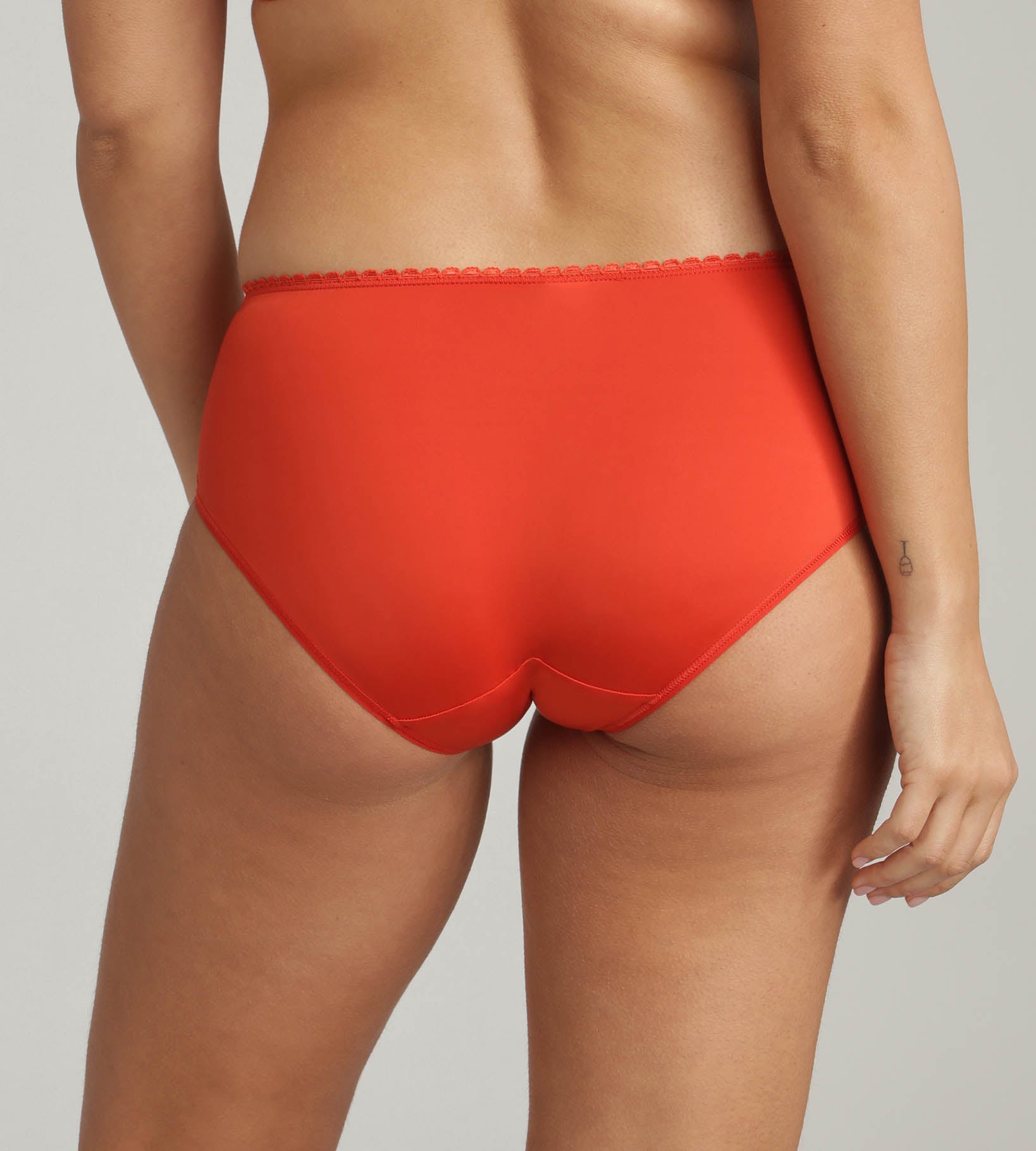 Découvrez notre culotte midi en dentelle corail, une pièce de lingerie alliant élégance et confort. Cette culotte midi est un incontournable de votre garde-robe lingerie, mariant style et confort avec perfection. Sa dentelle délicate et sa microfibre douce procurent une sensation agréable sur la peau tout au long de la journée. Féminine à souhait, vous adorerez la porter au quotidien. Sa coupe couvrante sur les fesses convient à toutes les femmes, offrant à la fois confort et maintien. Laissez-vous séduire par cette culotte lumineuse et vive qui égaye votre collection de lingerie. Laissez-vous charmer par cette lingerie qui sublime votre féminité avec raffinement !
