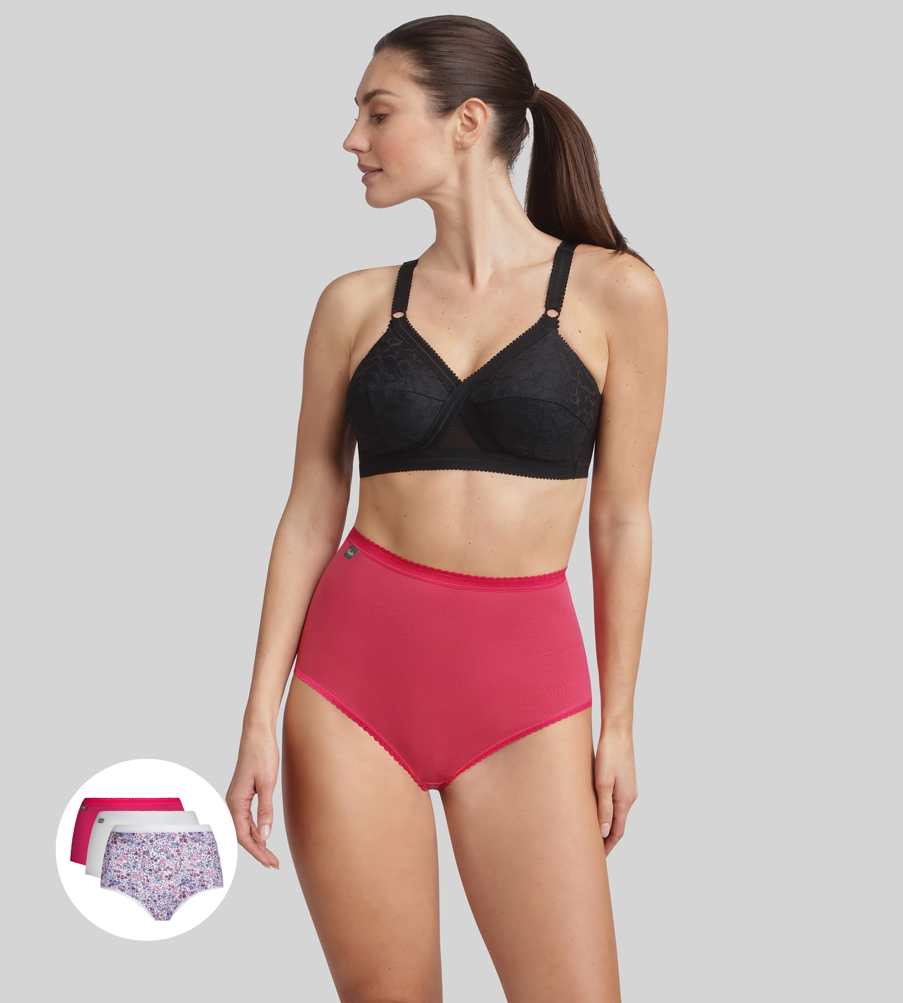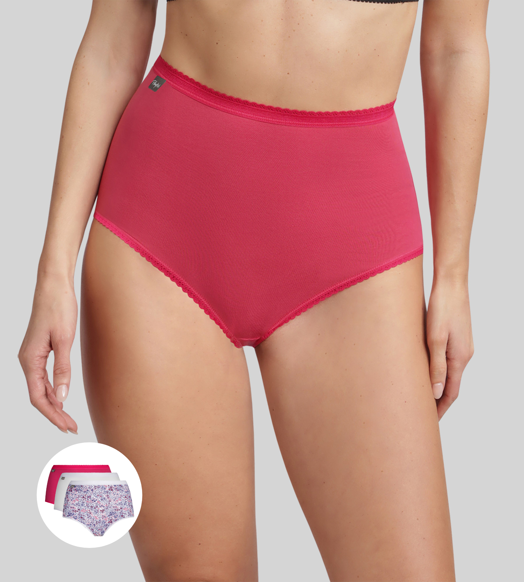 Lot de 3 culottes taille haute hibiscus, blanc et imprimé fleuri violet Cotton Stretch