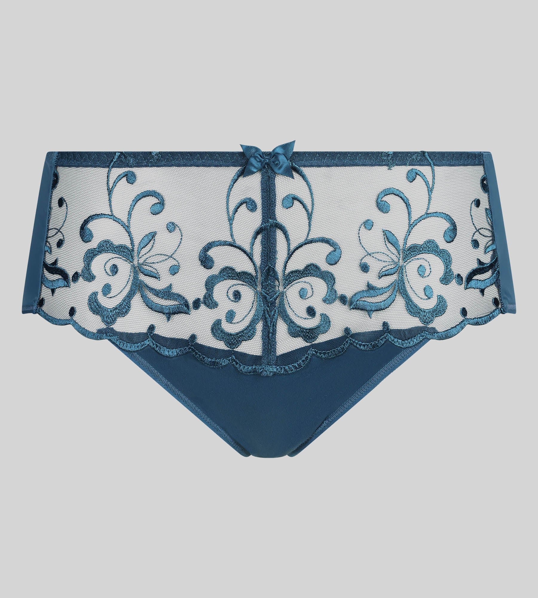 Combining comfort and femininity, these Essential Elegance Embroidery midi knickers are now available in a sophisticated and timeless pine green shade. Its full coverage shape hugs your curves harmoniously for perfect support all day long. Floral embroidery on the front adds a touch of refinement, while the silky, stretchy microfibre back ensures a pleasant, soft feel against the skin. Designed to enhance your figure while guaranteeing absolute comfort.