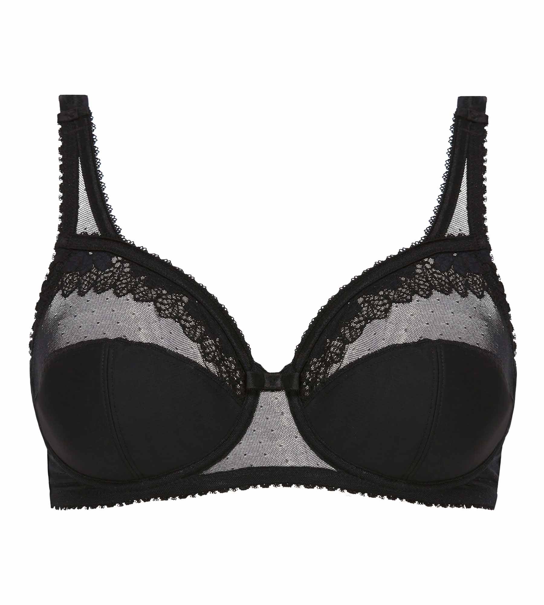 Grâce au soutien-gorge Coeur Croisé Microfibre noir, l’élégance est aussi de la partie ! Playtex® a minutieusement pensé les bonnets conçus de trois différentes matières : microfibre, dentelle feuilles et tulle plumetis fin. Une couture sur le bonnet dessine un arrondi parfait et toujours le système infaillible coeur croisé qui signe une jolie silhouette.